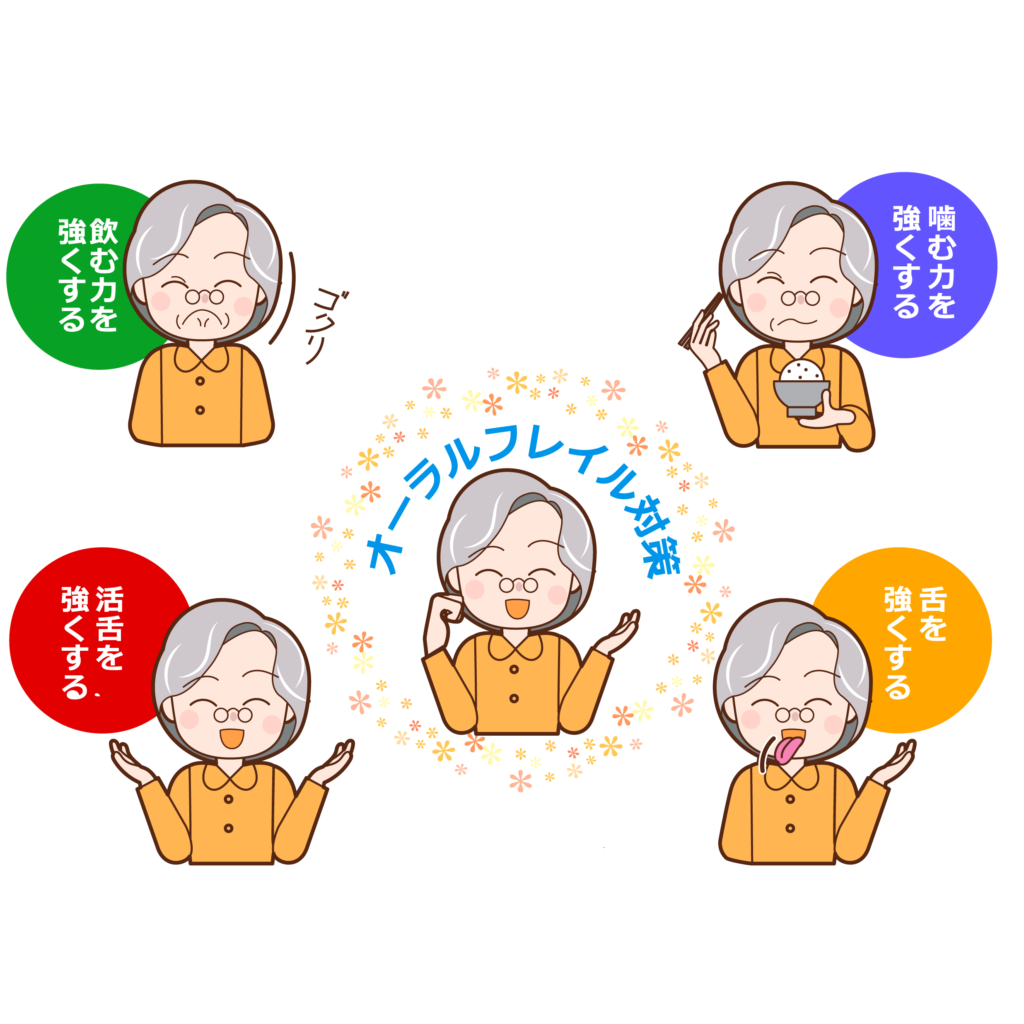 また、嚥下体操などで唾液を出やすくすることも効果的です。