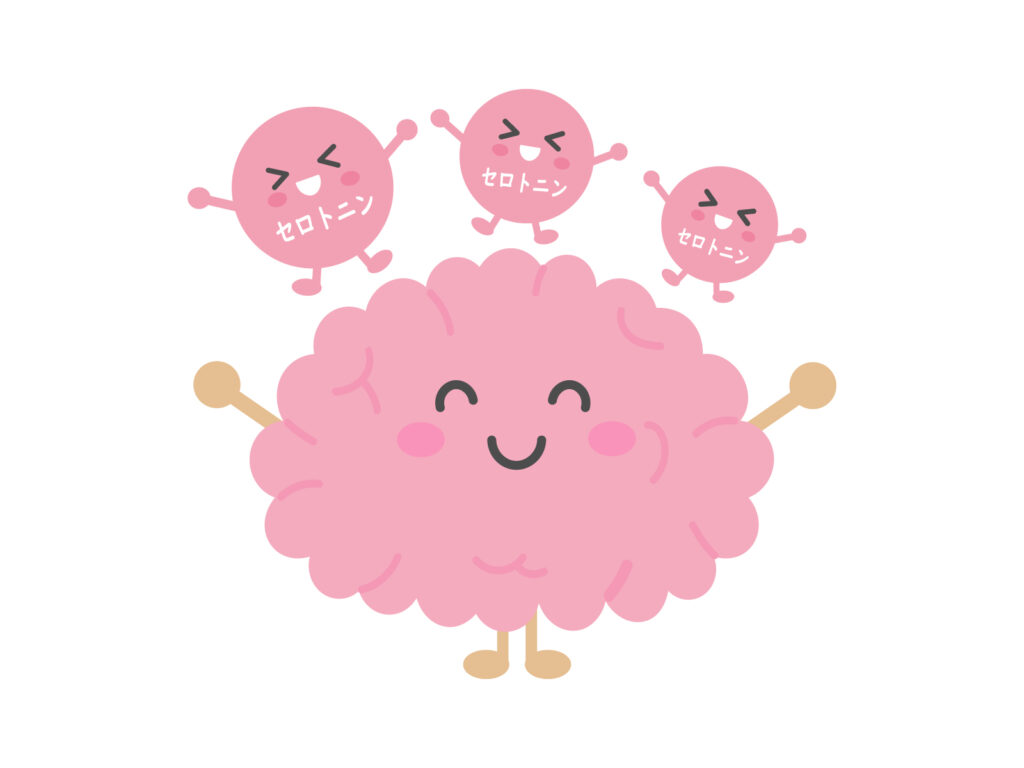 セロトニン神経が活性化すると、ストレスを緩和し幸福感を高めるセロトニンの分泌が増え、うつなどの改善にも効果があるといわれています。また、セロトニンがたくさん出ると、夜、ぐっすり眠れるという効果もえられます。