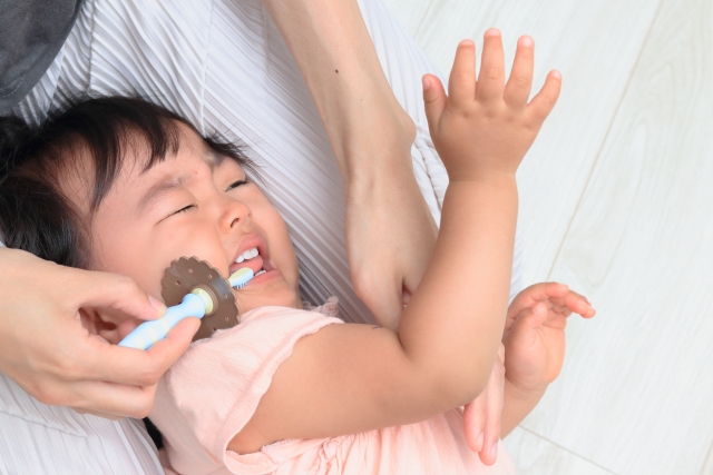 「イヤイヤが始まって仕上げみがきをさせてくれない…」