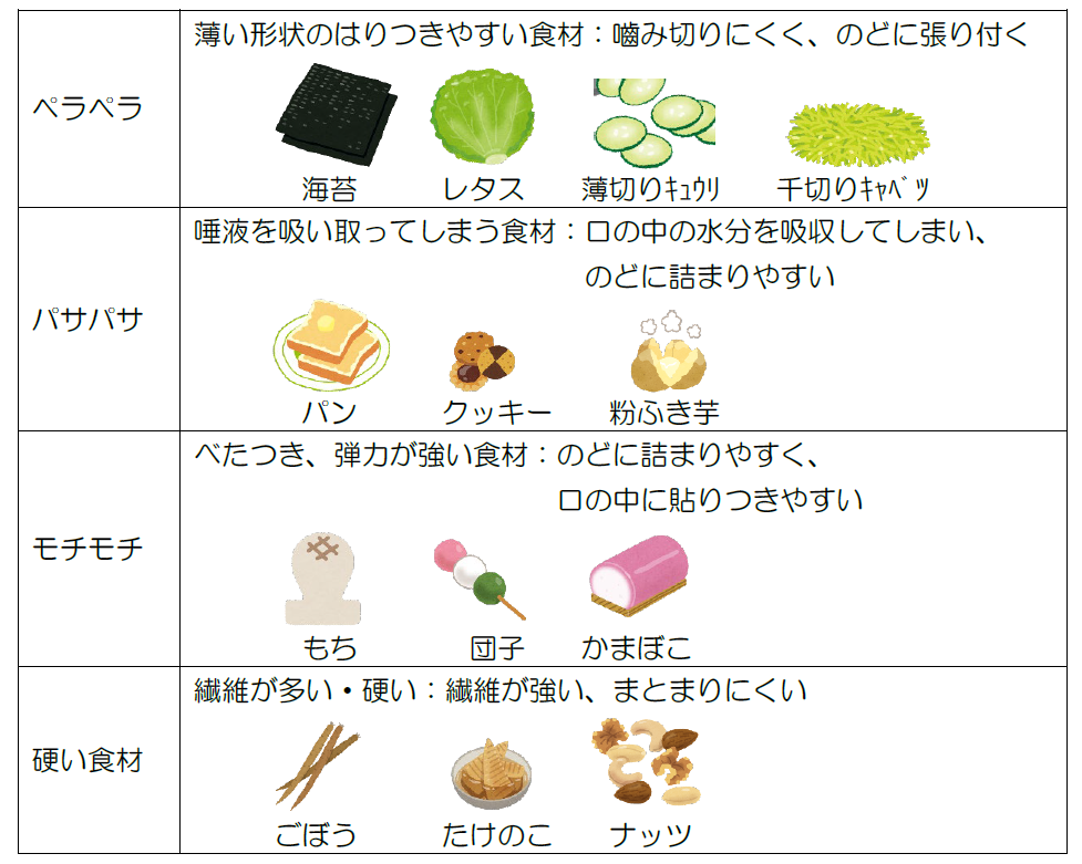 👉 これらは噛み切りにくく、食塊形成が難しい食材です。