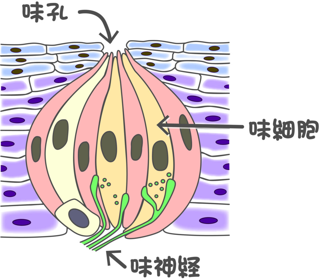 この味蕾が、味を生み出す物質を感知して味覚を感じ取ります。
