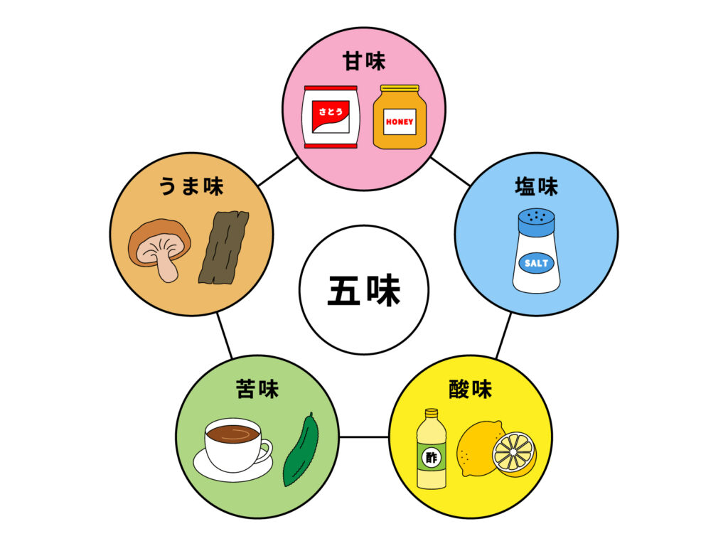 味には、甘味・塩味・旨味・酸味・苦味という5つの基本があります。
